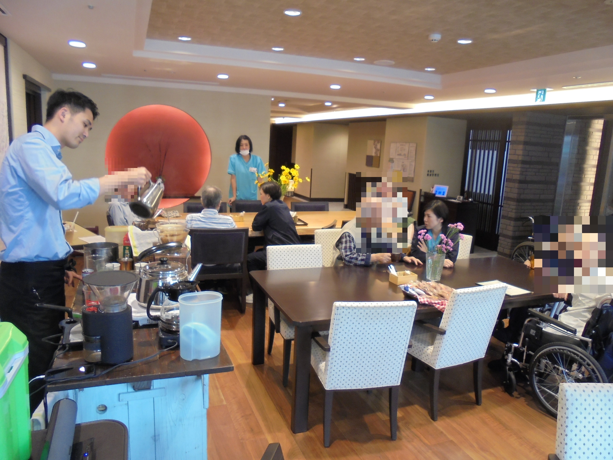 毎月開催しているme-mO様による「訪問カフェ」を、今回は初の試みで一階のエントランスホール兼地域交流スペースで開催致しました。