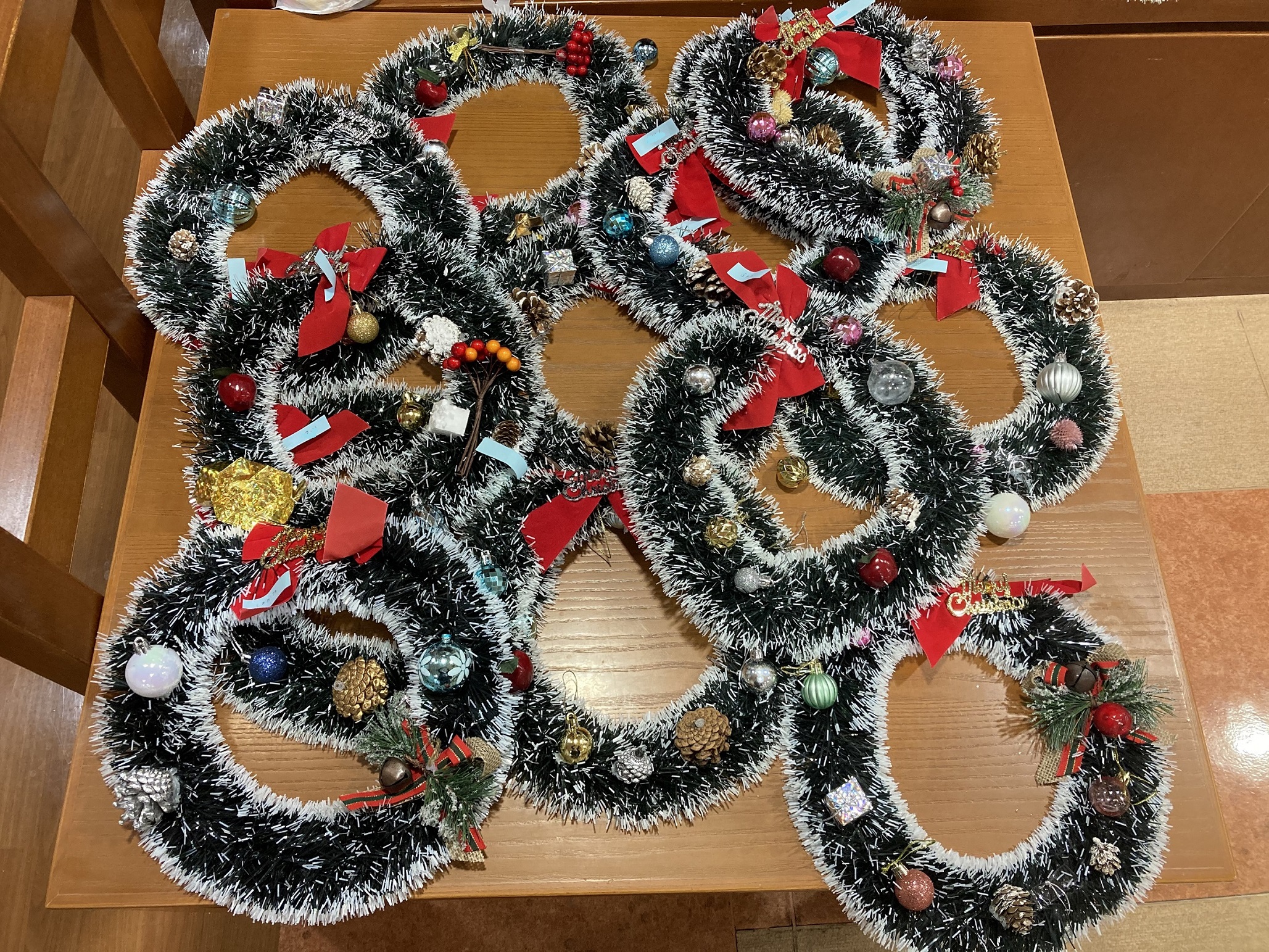 12月に入り、クリスマスが迫ってきたことを受け、ご入居者の皆様にはクリスマスリース作りにご協力いただきました。