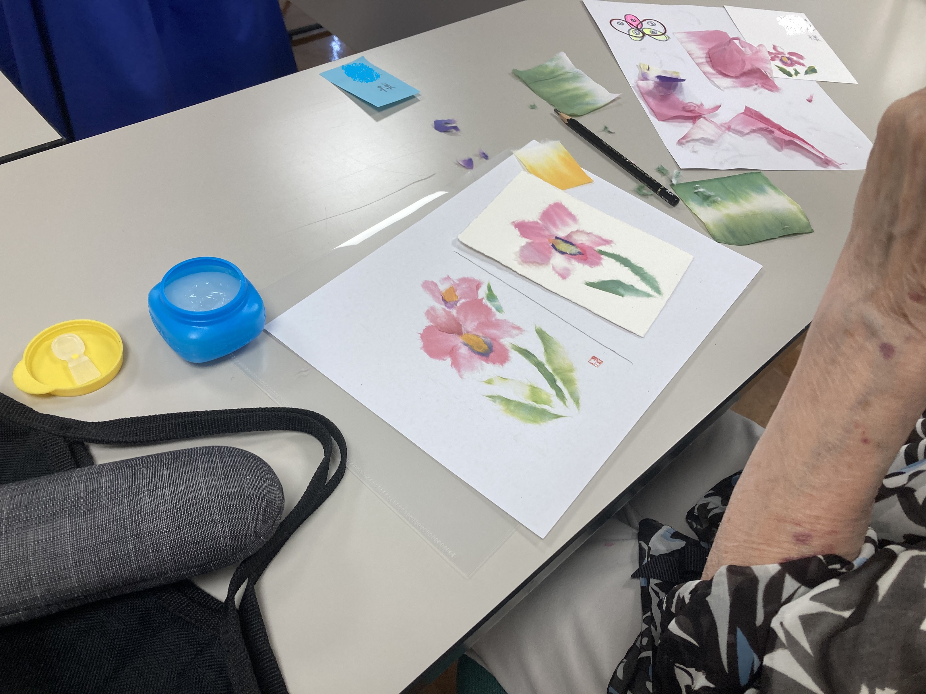 月に1度のちぎり絵サークルのご案内です。 先生が作成したお手本を見ながら、参加されるご入居者は和紙を手でちぎり、絵を完成させる作品作りです。