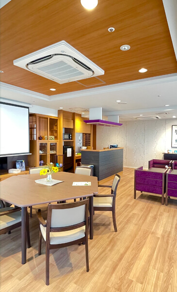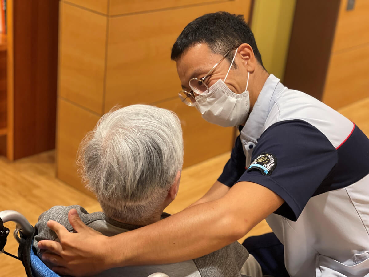 当館は、法定基準の1.5倍という手厚い人員体制を整えています。お食事の準備や館内の清掃は専門の会社に委託しており、介護・看護スタッフがご入居者のケアに専念できる環境を実現しました。