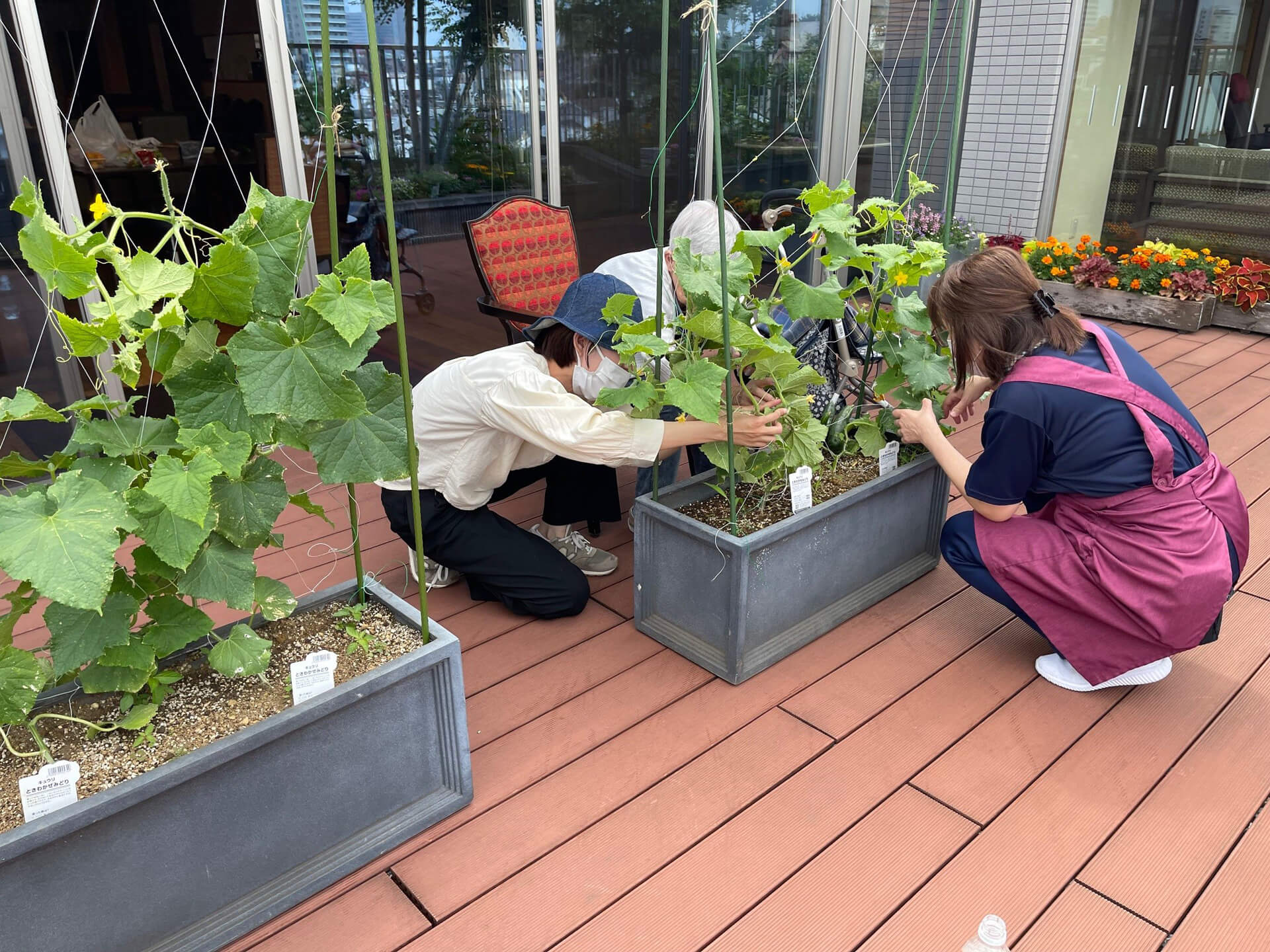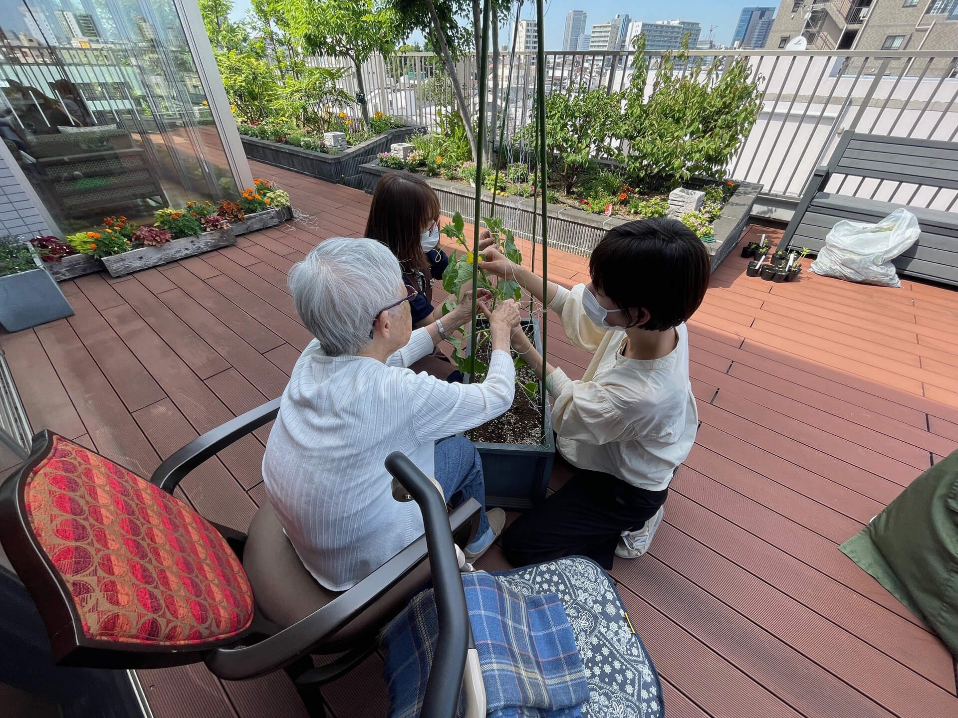 さらに、この花壇は設計を手がけた上級園芸療法士の専門性を活かし、園芸療法や園芸サークルの活動にも活用されています。ご入居者が植物とふれあいながら、心身の癒しと生きがいを実感できる場となっています。