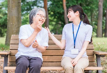 私たちの認知症ケアは「その方を知ります、ありのままを受け入れます、共に笑顔になります」という理念のもと、お一人おひとりのその方らしい暮らしを支えます。